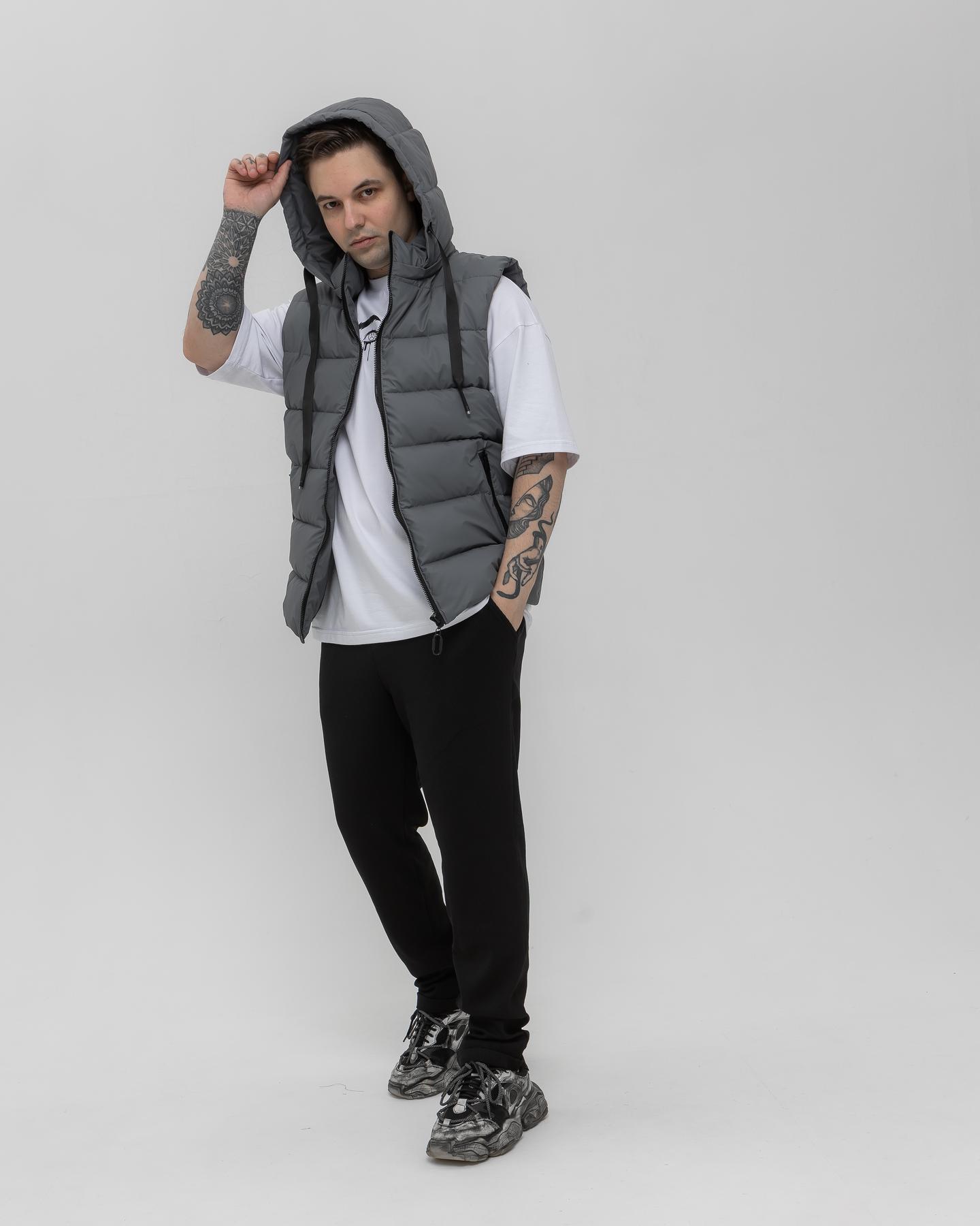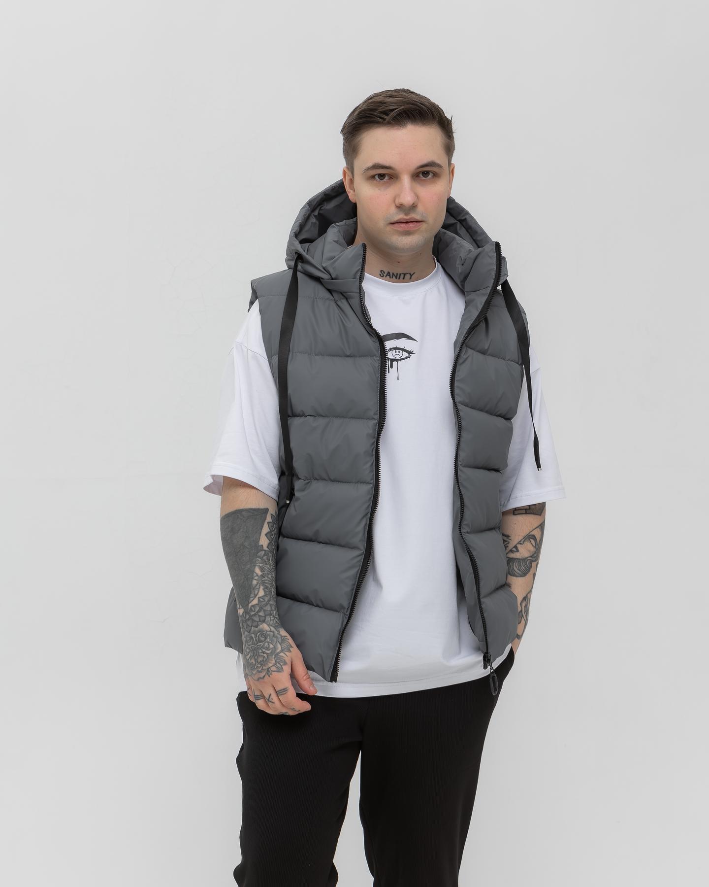 Жилетка з капюшоном графітна