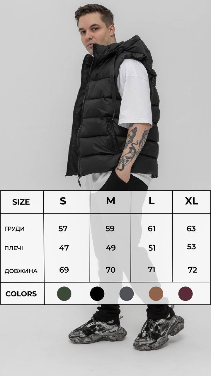 Будьте першим, хто залишив відгук на “Жилетка з капюшоном графітна”